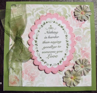 Here are a list of the items I used for the card: JustRite Stamps from the Thinking of You set; Stampabilities stamp from my stash, Psalm 91.11; Spellbinders Labels 4, Labels 1. and Classic Scalloped Ovals Small; the paper is from Basic Grey Porcelain pad along with Bazilla Fuzzy and Olive; to color in the leaves on the stamp I used YG97 Copic marker; ribbon is Offray Simply Sheer Me Willow; flowers are from Prima; Cotton Candy Stickles to add that extra glitz.